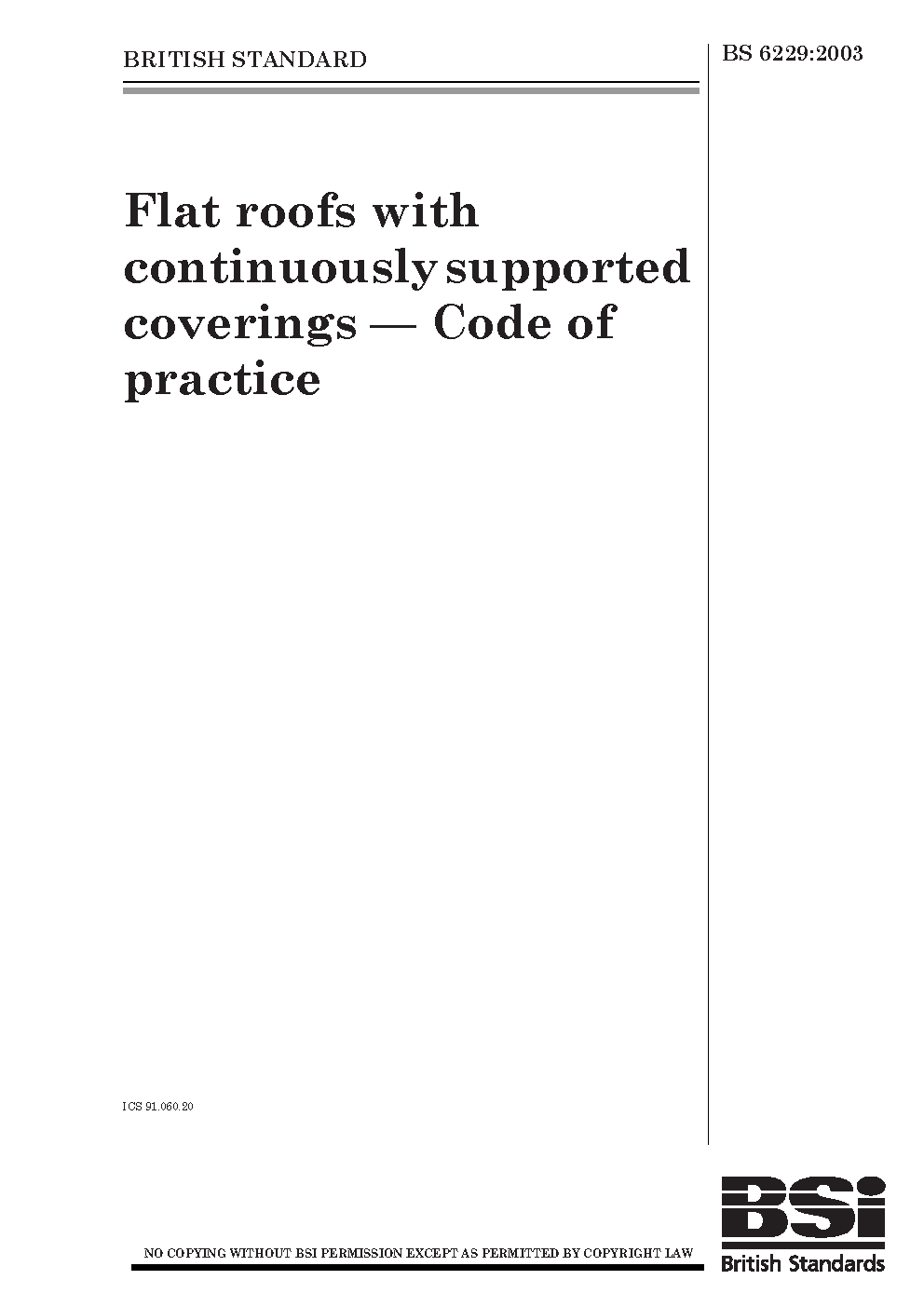 Flat roofs with continuously supported flexible waterproof coverings. Code of practice