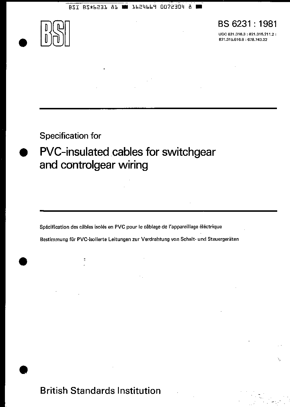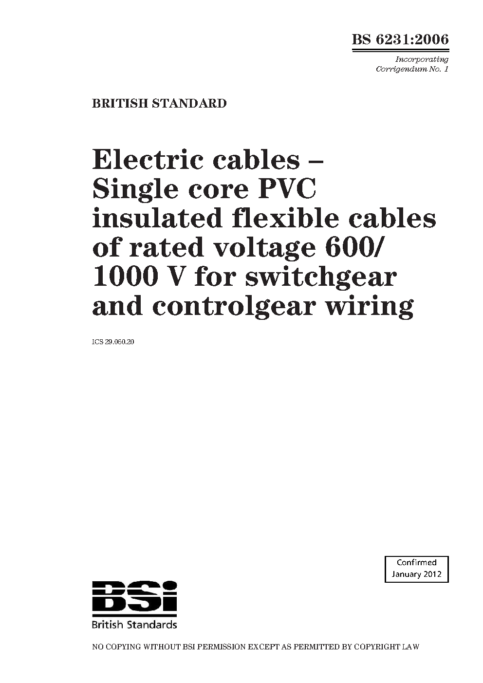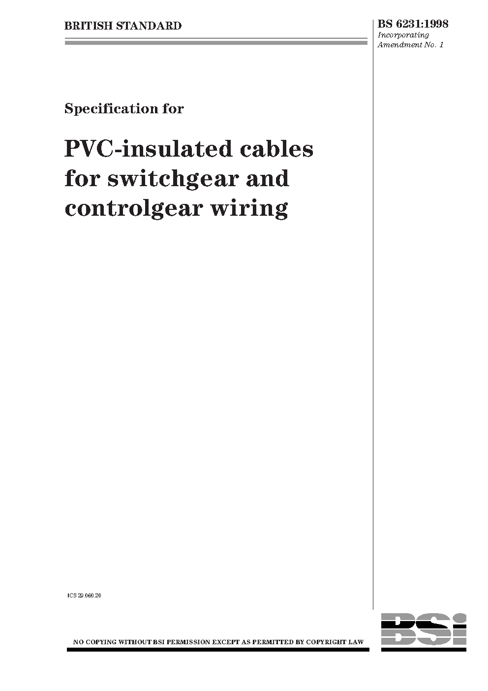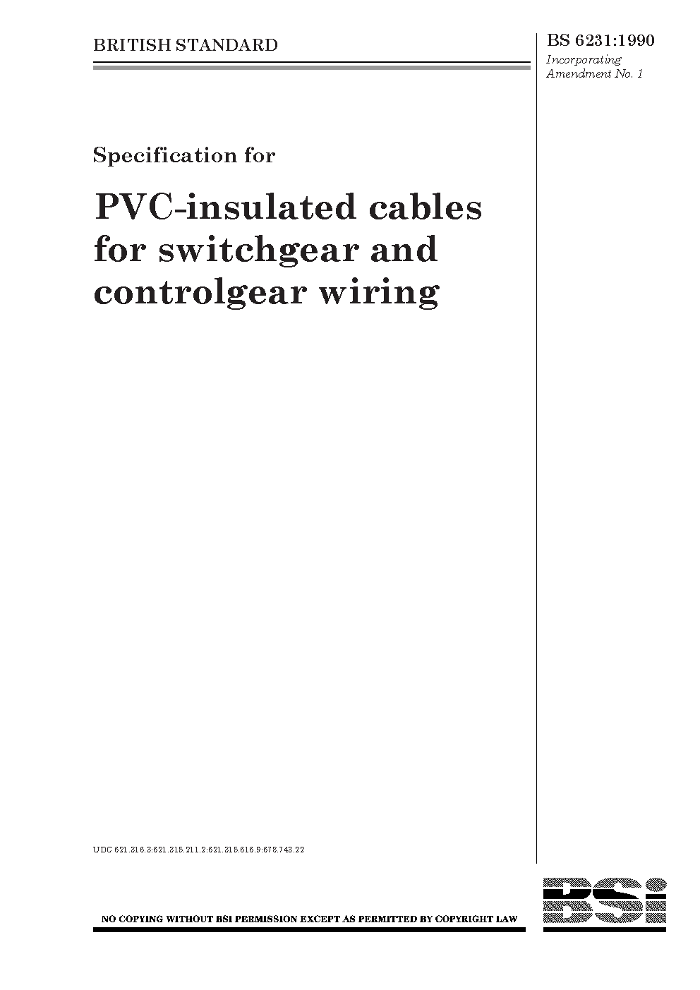 Specification for PVC-insulated cables for switchgear and controlgear wiring