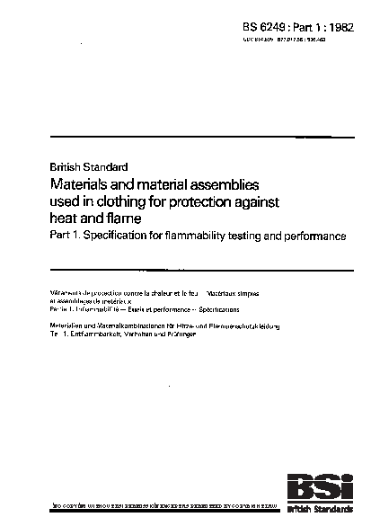 Materials and material assemblies used in clothing for protection against heat flame Specification flammability testing performance