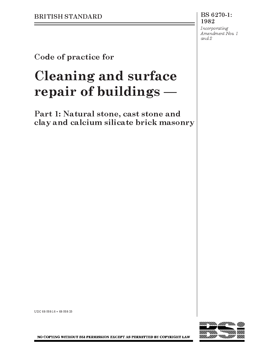 Code of practice for cleaning and surface repair buildings Natural stone, cast stone clay calcium silicate brick masonry