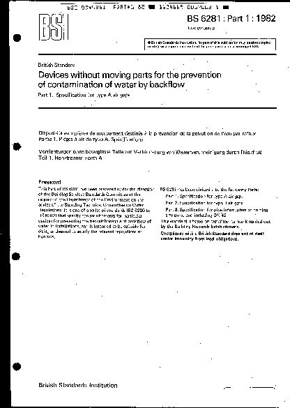 Devices without moving parts for the prevention of contamination water by backflow Specification type A air gaps