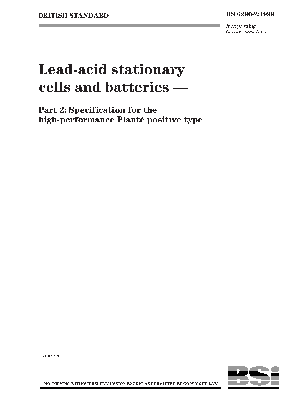 Lead-acid stationary cells and batteries Specification for the high-performance Plante positive type