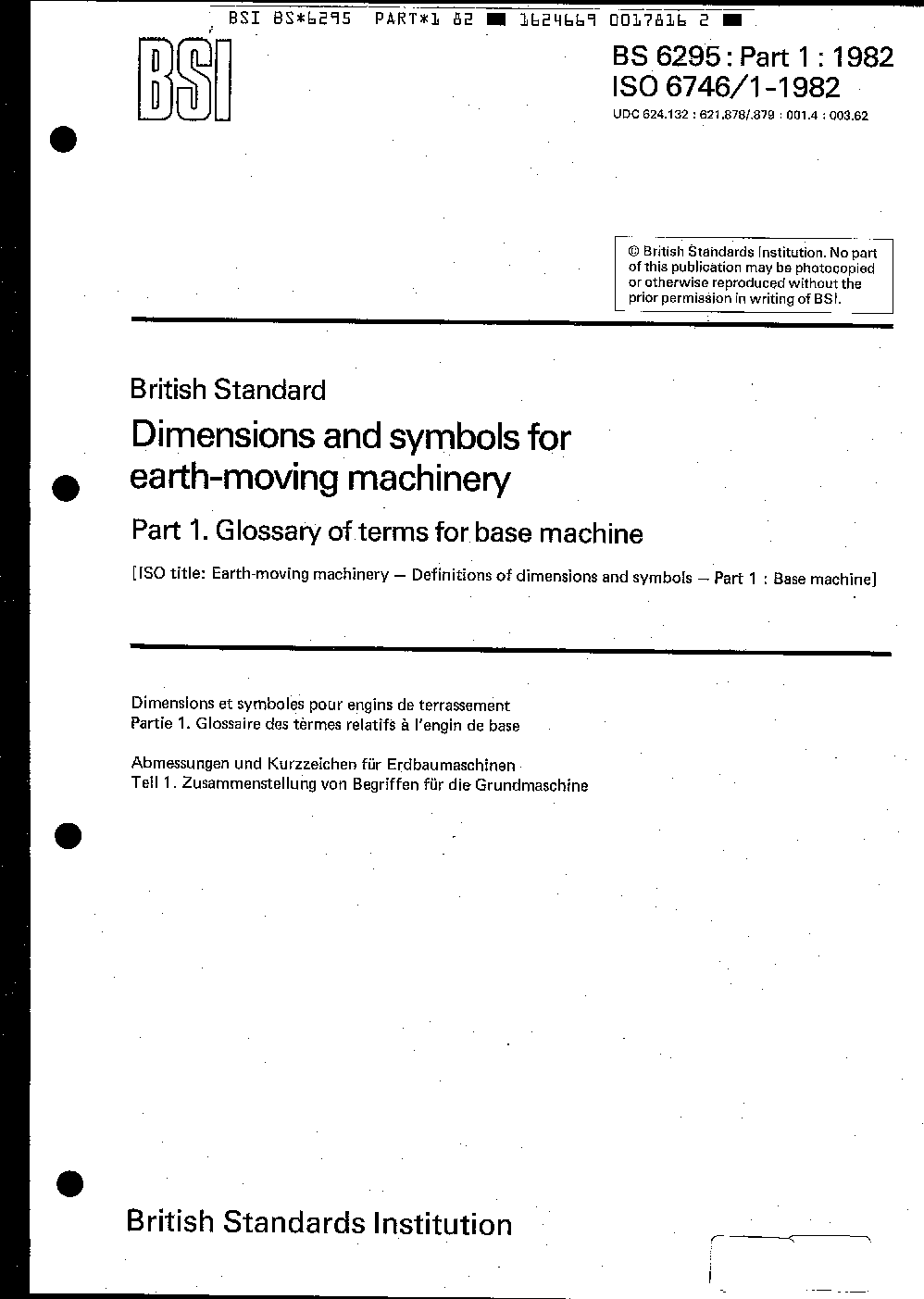 Dimensions and symbols for earth-moving machinery Glossary of terms base machine