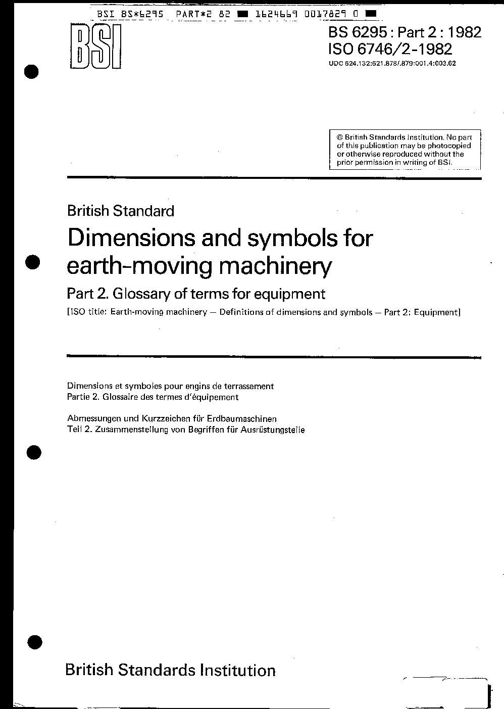 Dimensions and symbols for earth-moving machinery Glossary of terms equipment