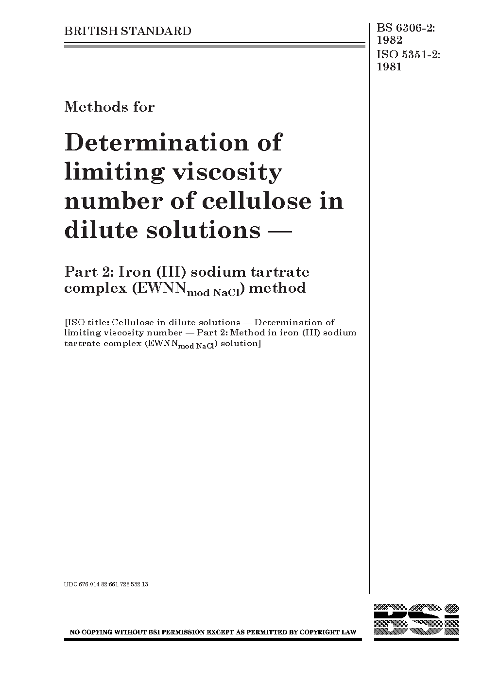 Methods for determination of limiting viscosity number cellulose in dilute solutions Iron (III) sodium tartrate complex (EWNNmod NaCl) method