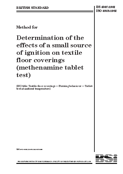 Method for determination of the effects of a small source of ignition on textile floor coverings (methenamine tablet test)