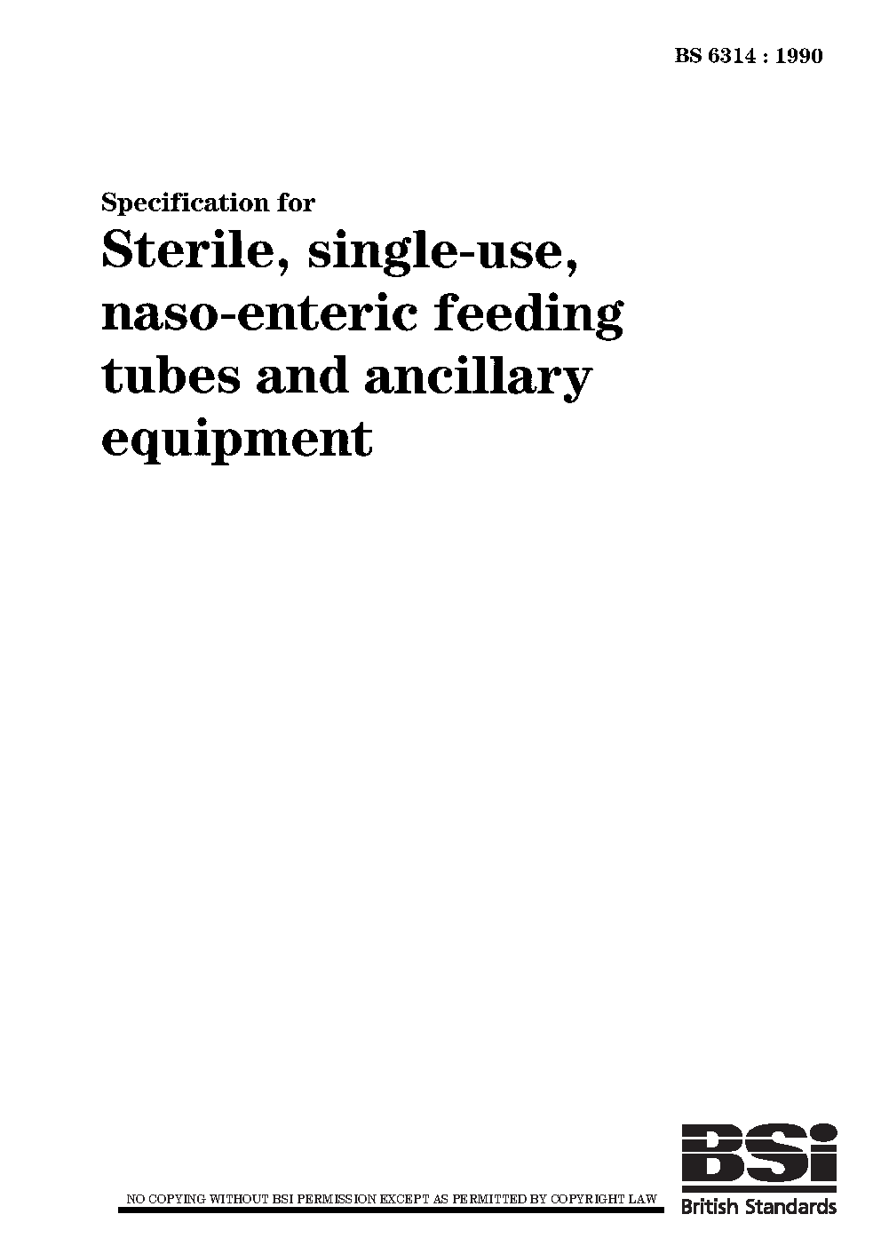 Specification for sterile, single-use, naso-enteric feeding tubes and ancillary equipment