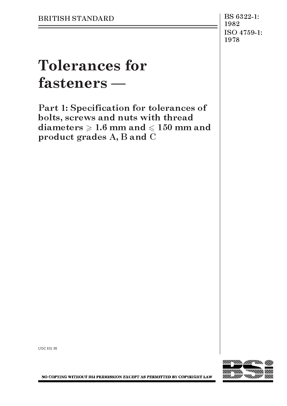 Tolerances for fasteners Specification tolerances of bolts, screws and nuts with thread diameters = 1.6 mm = 150 product grades A, B C