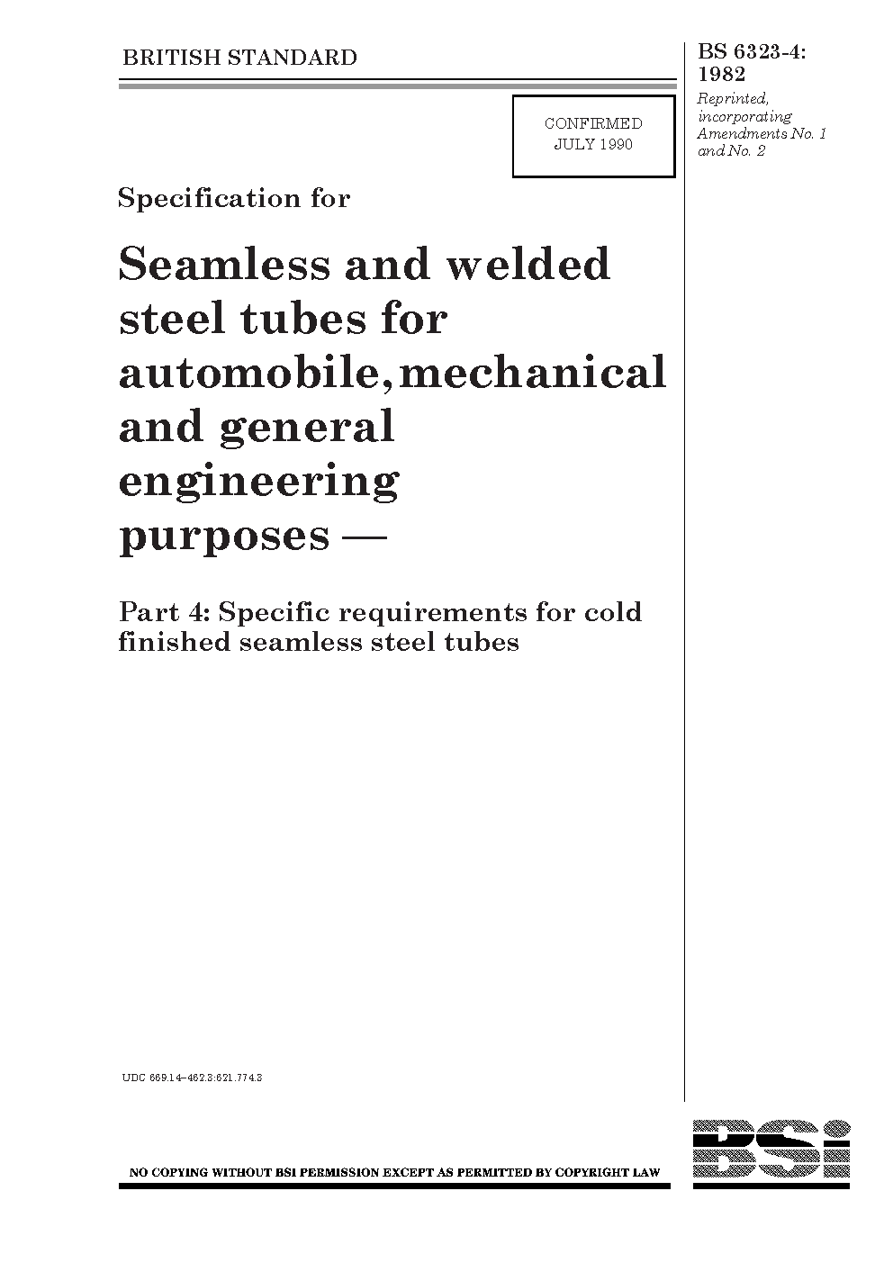 Specification for seamless and welded steel tubes automobile, mechanical general engineering purposes Specific requirements cold finished