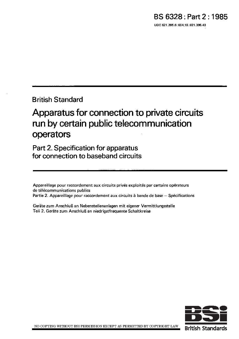 Apparatus for connection to private circuits run by certain public telecommunication operators Specification apparatus baseband
