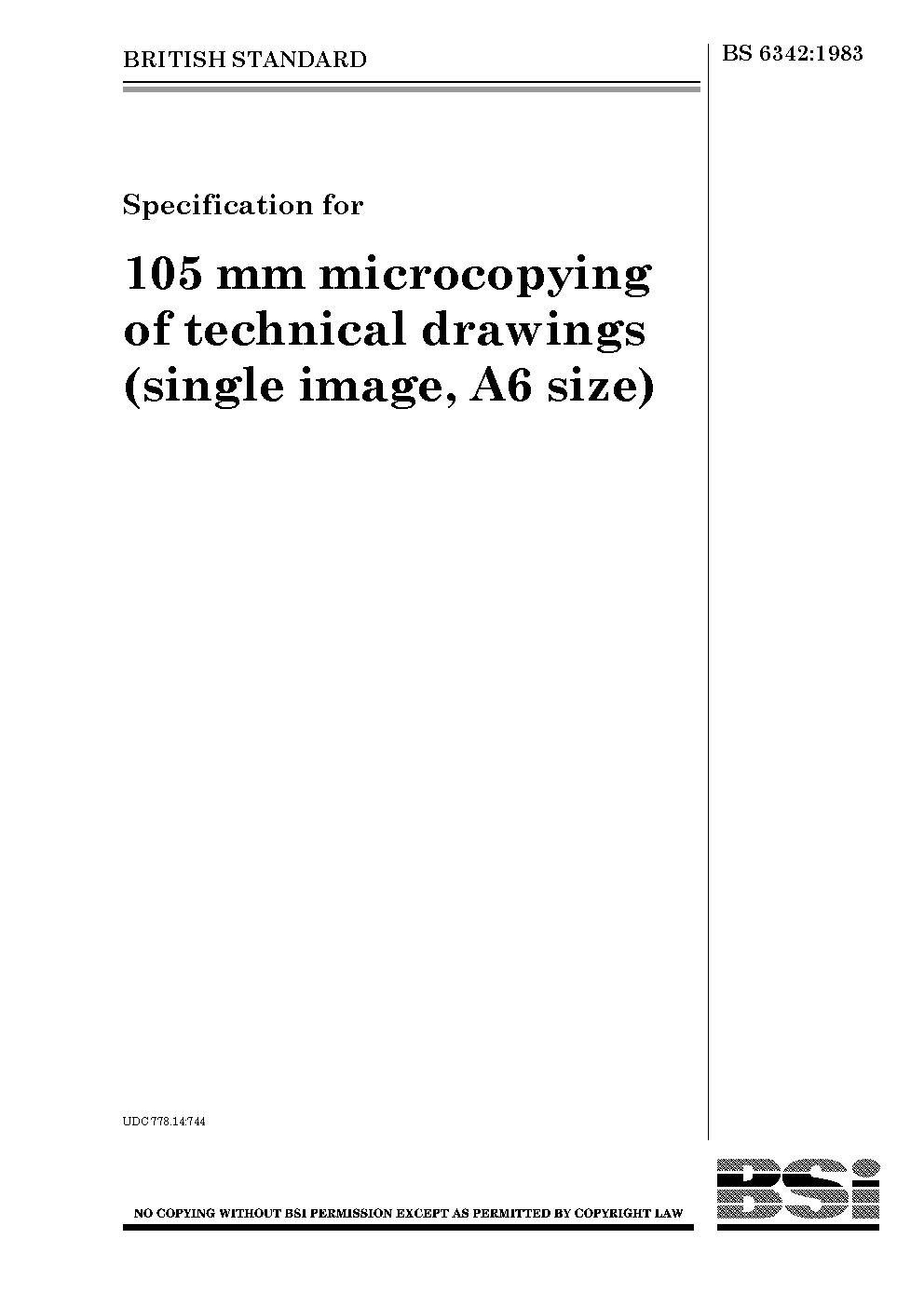 Specification for 105 mm microcopying of technical drawings (single image, A6 size)