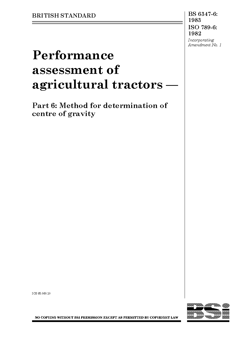 Performance assessment of agricultural tractors Method for determination centre gravity