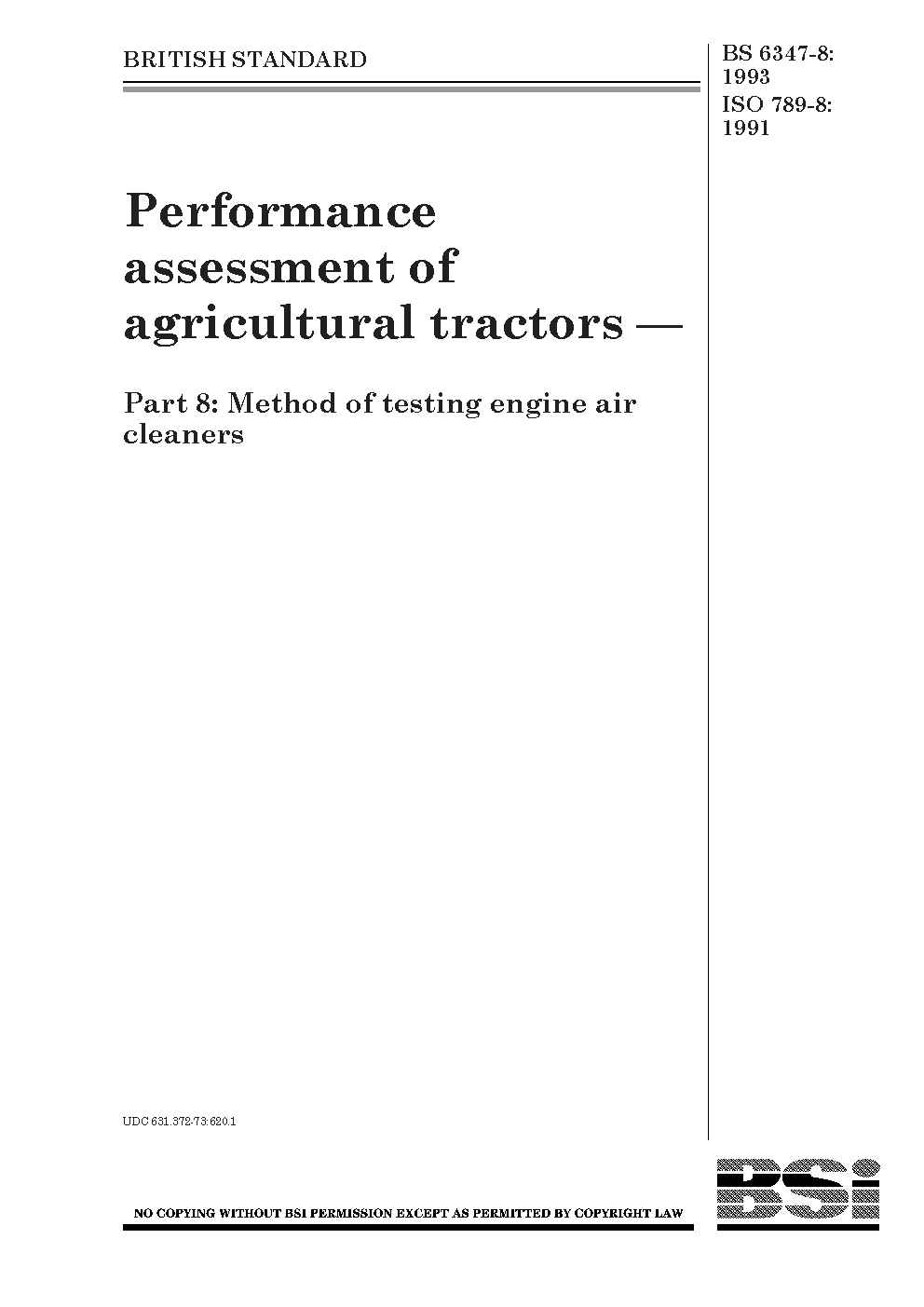 Performance assessment of agricultural tractors Method testing engine air cleaners