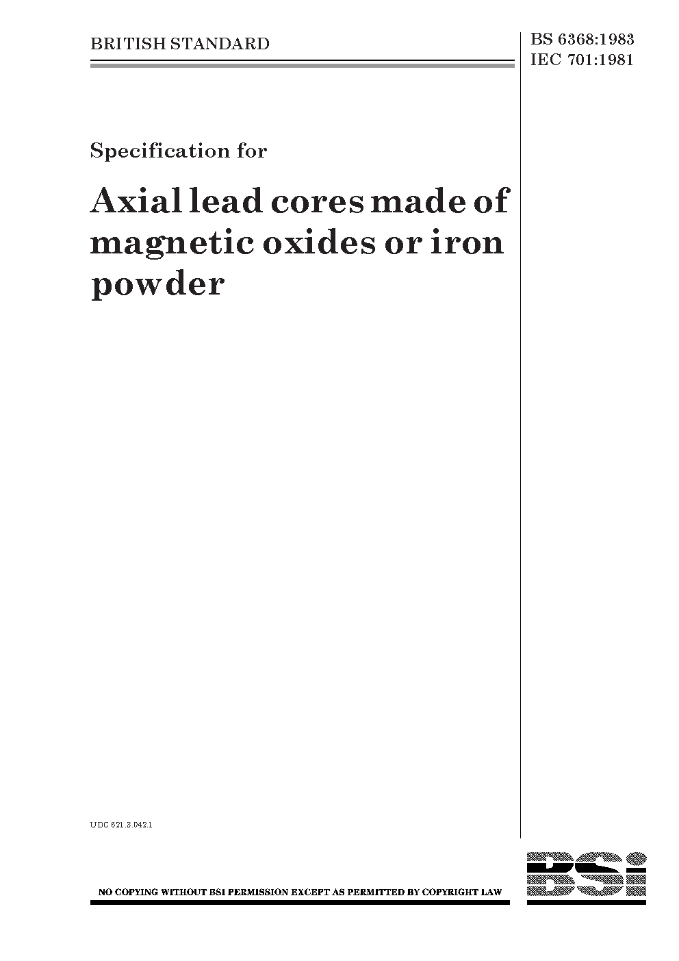 Specification for axial lead cores made of magnetic oxides or iron powder