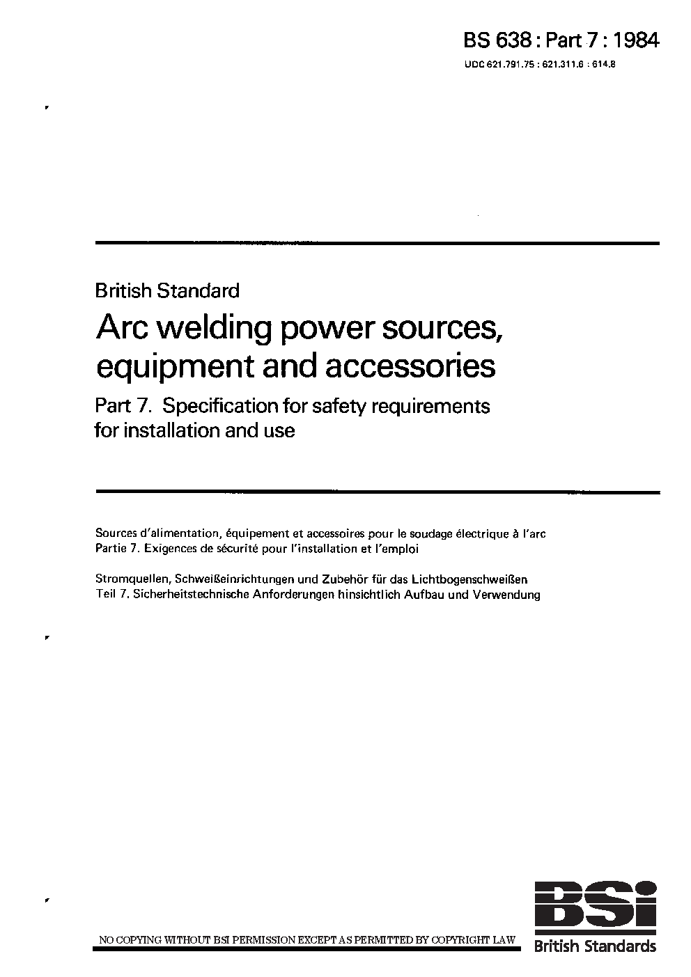Arc welding power sources, equipment and accessories Specification for safety requirements installation use