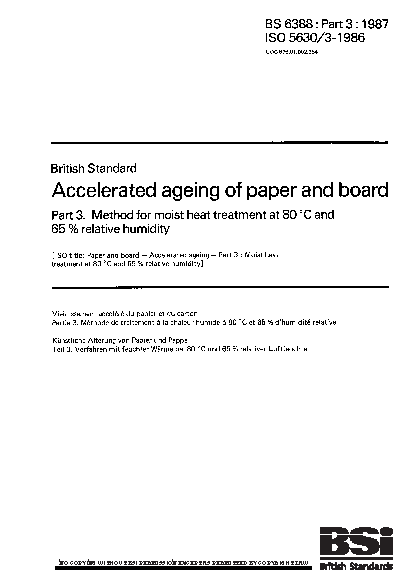 Accelerated ageing of paper and board Method for moist heat treatment at 80°C 65% relative humidity