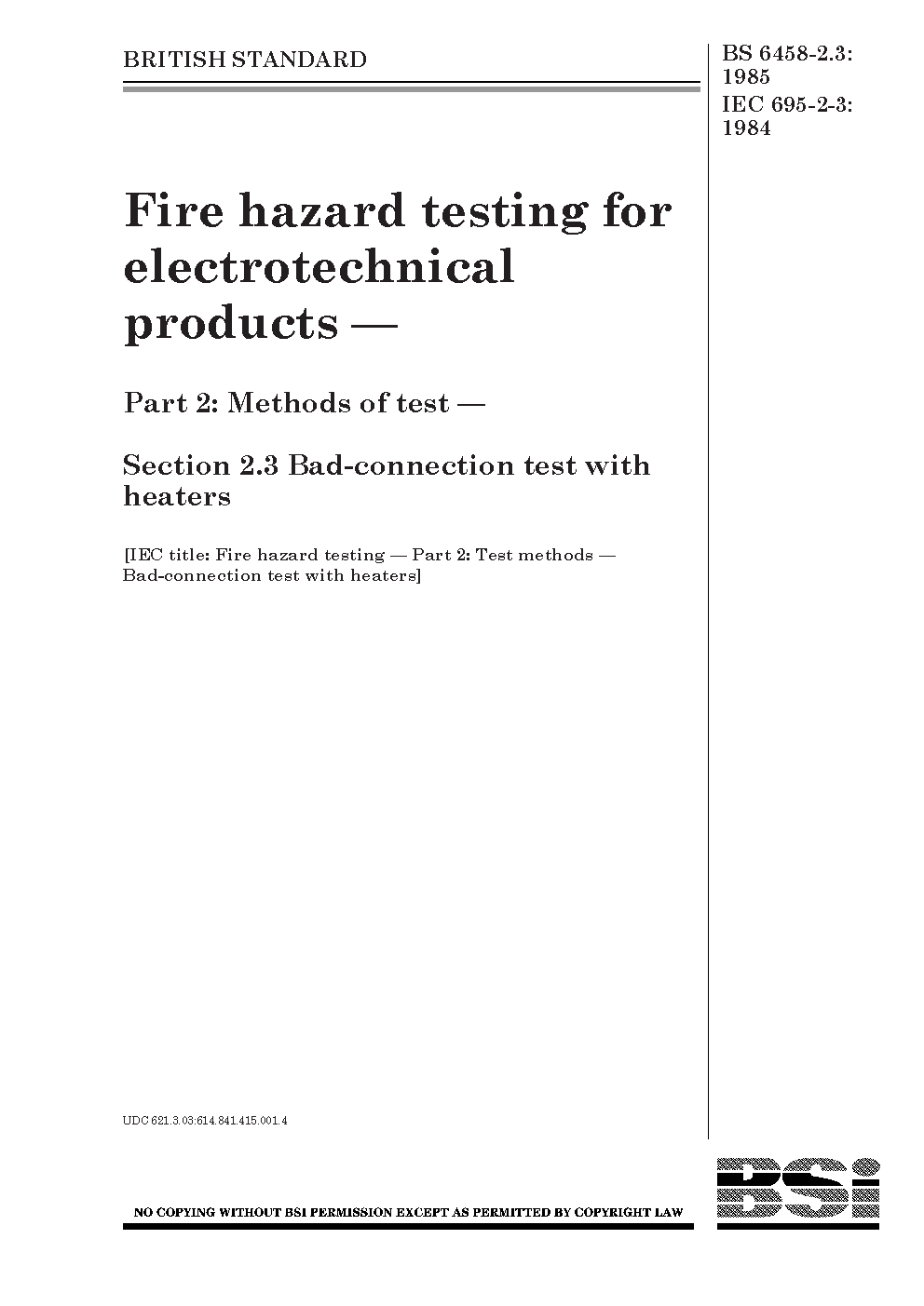 Fire hazard testing for electrotechnical products. Test methods Bad-connection test with heaters