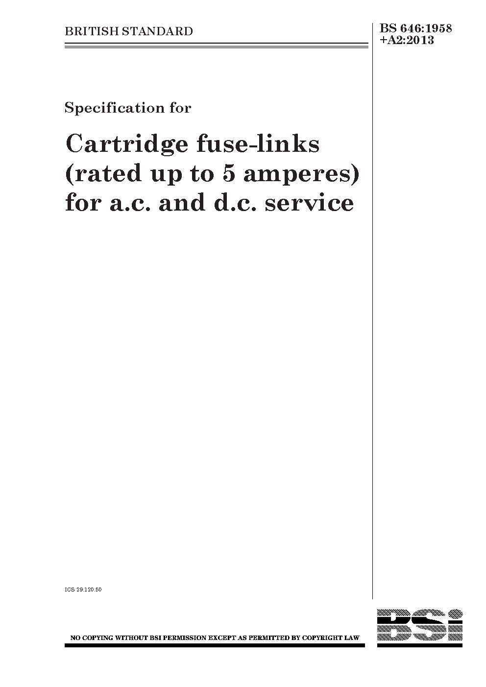 Specification for Cartridge fuse-links (rated up to 5 amperes) for a.c. and d.c. service