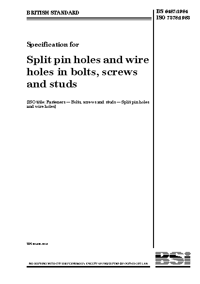 Specification for split pin holes and wire holes in bolts, screws and studs