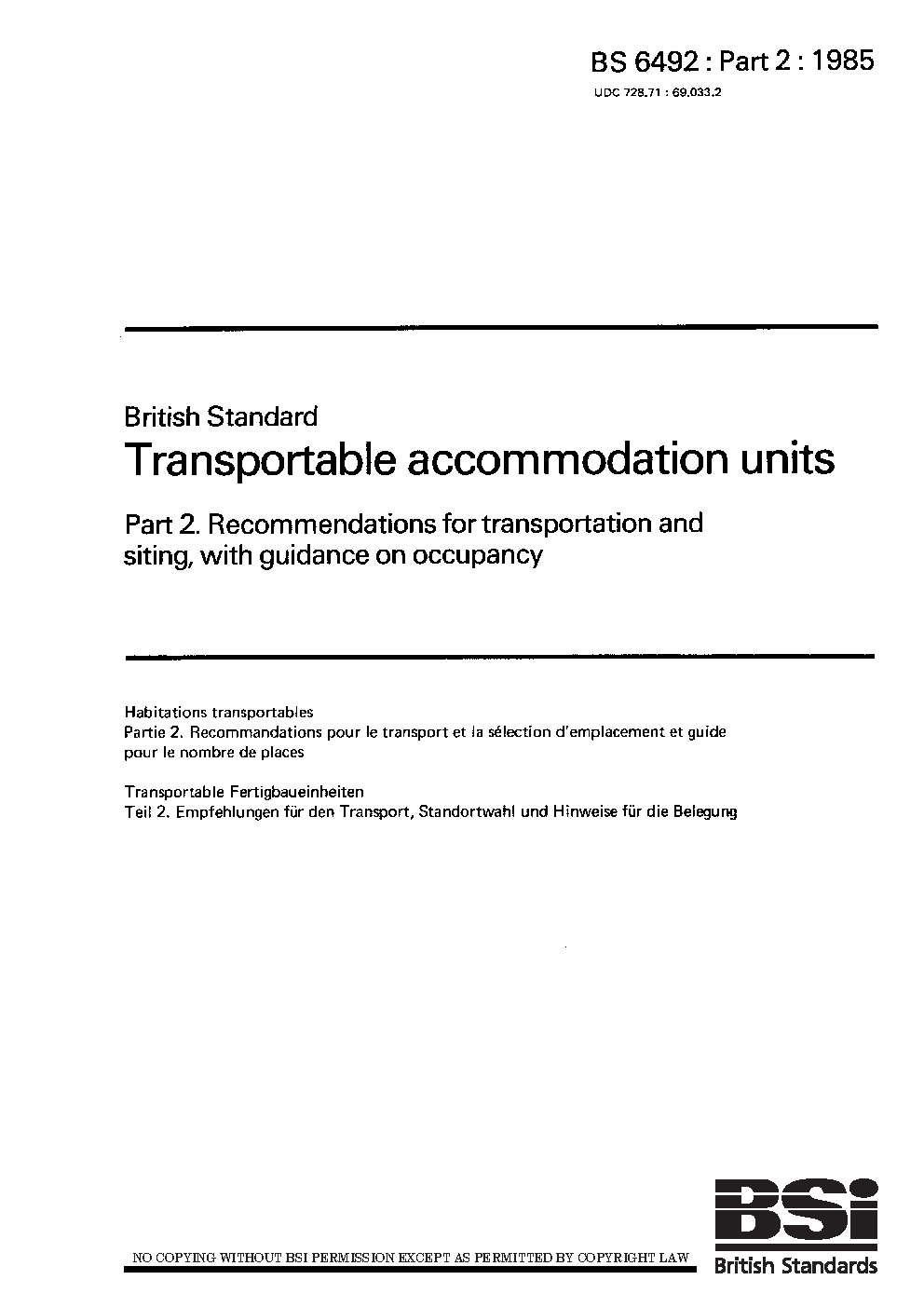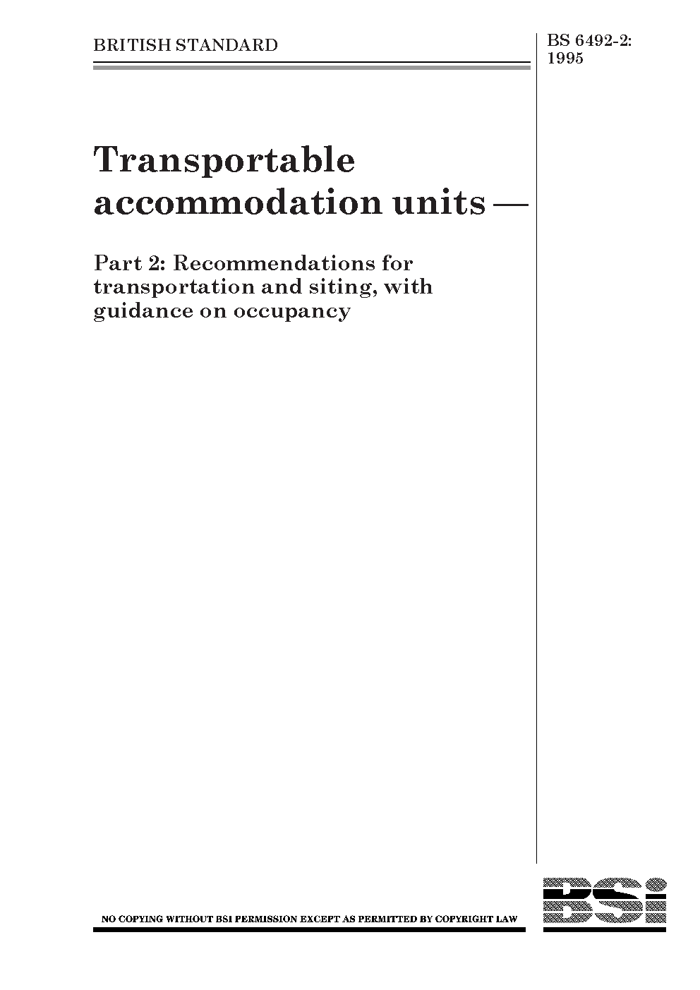 Transportable accommodation units Recommendations for transportation and siting, with guidance on occupancy