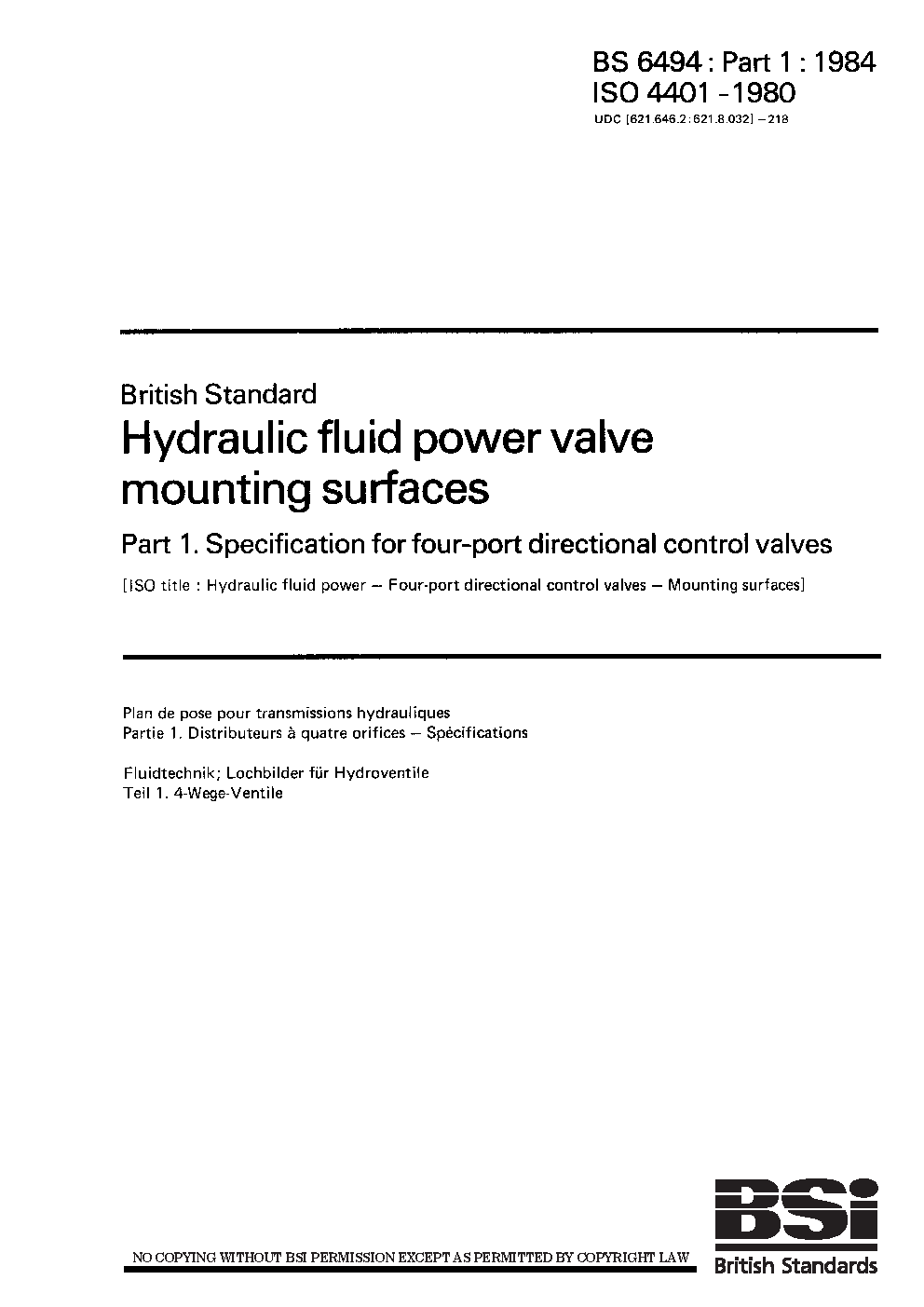 Hydraulic fluid power valve mounting surfaces Specification for four-port directional control valves