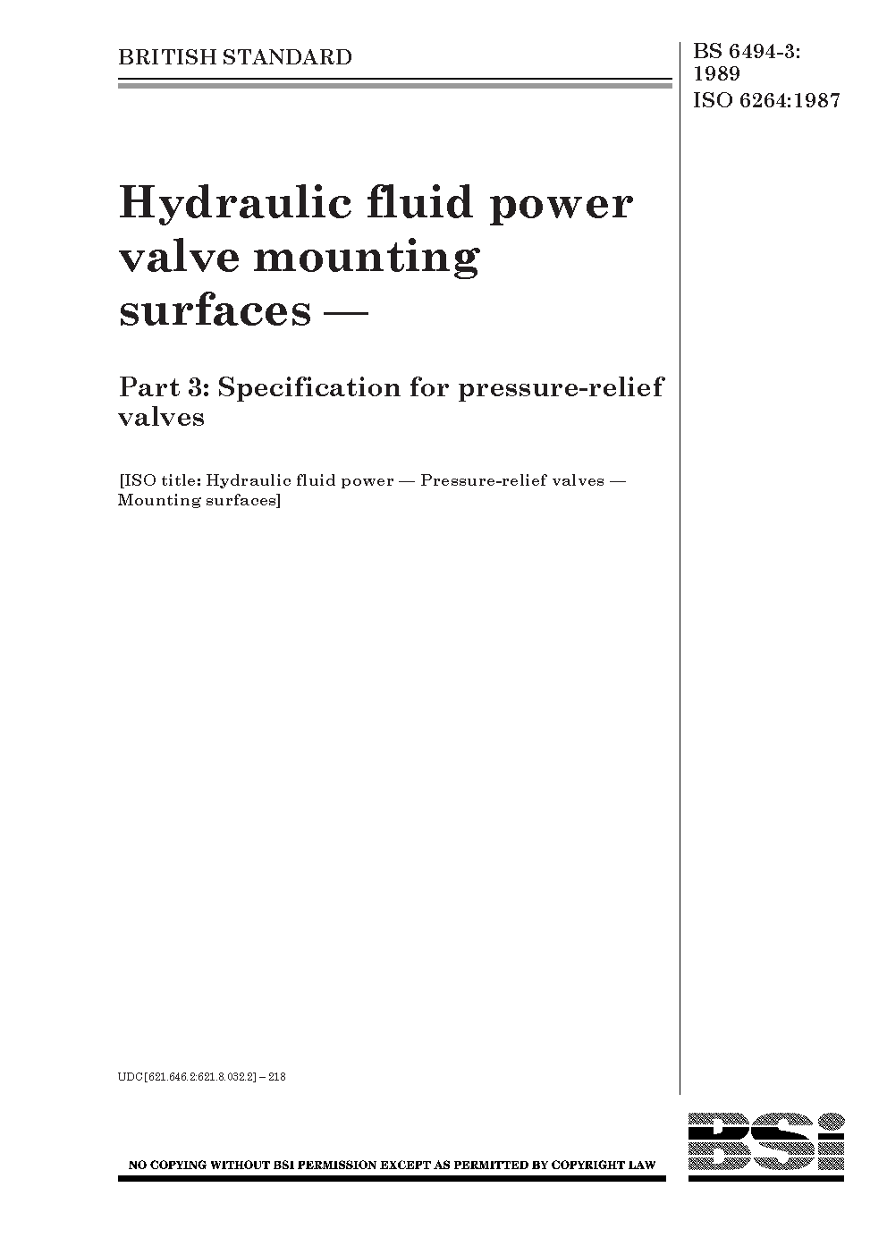 Hydraulic fluid power valve mounting surfaces Specification for pressure-relief valves