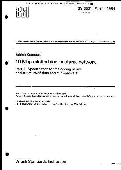 10 Mbps slotted ring local area network Specification for the coding of bits and structure slots mini-packets