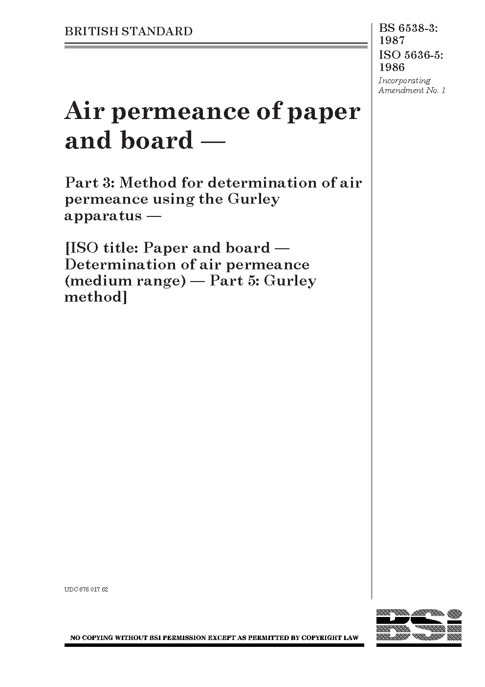 Air permeance of paper and board Method for determination air using the Gurley apparatus