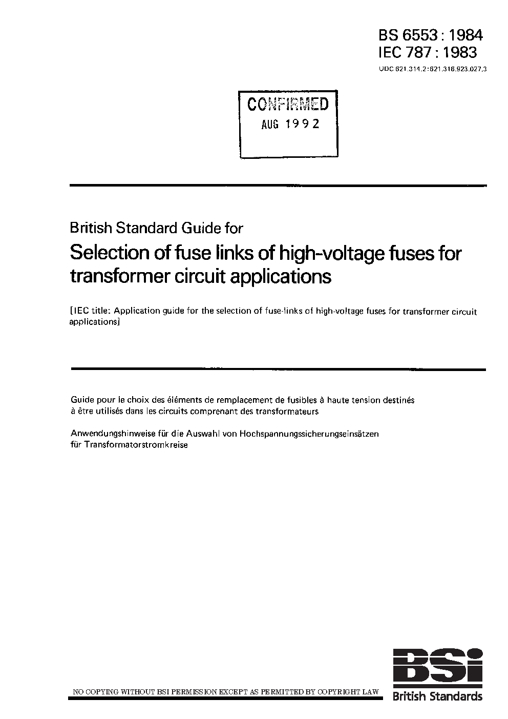 Guide for selection of fuse links of high-voltage fuses for transformer circuit applications