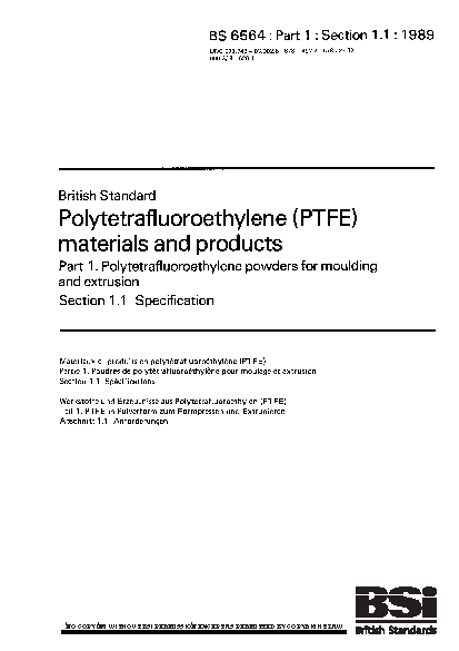 Polytetrafluoroethylene (PTFE) materials and products. powders for moulding extrusion Specification