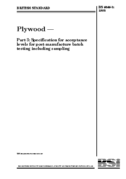 Plywood Specification for acceptance levels post-manufacture batch testing including sampling