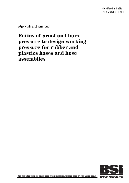 Specification for ratios of proof and burst pressure to design working pressure for rubber and plastics hoses and hose assemblies
