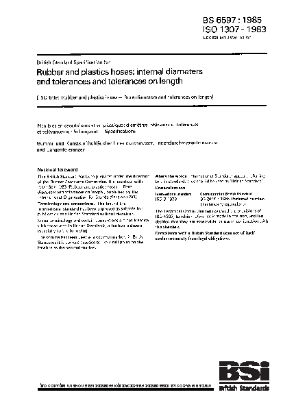 Specification for rubber and plastics hoses: internal diameters and tolerances and tolerances on length