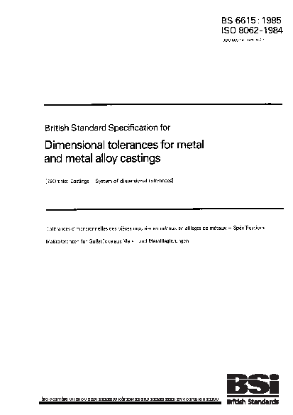 Specification for dimensional tolerances for metal and metal alloy castings