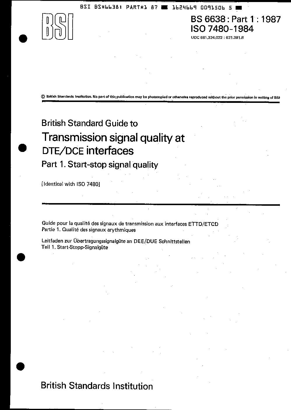 Guide to transmission signal quality at DTE/DCE interfaces Start-stop