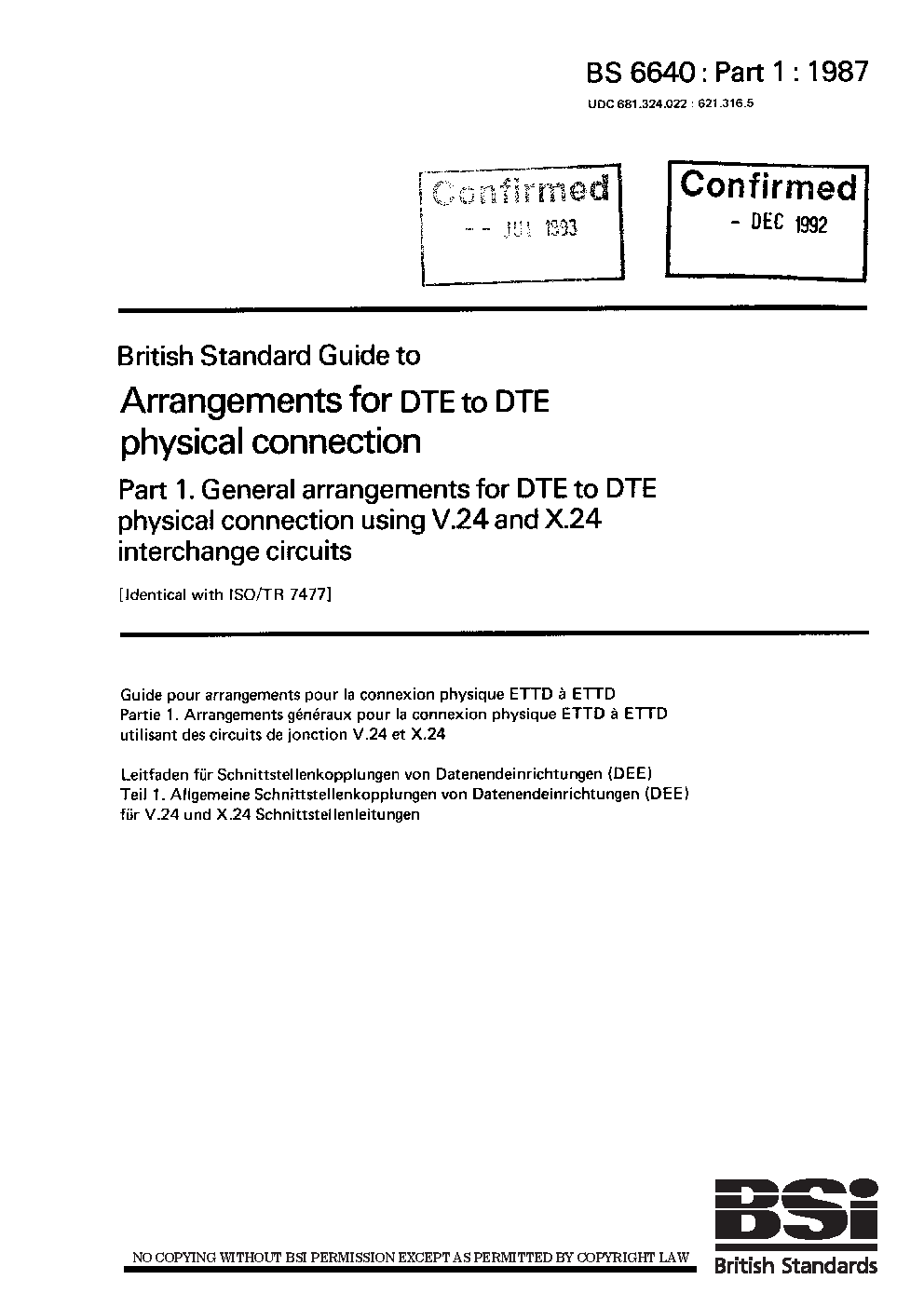 Guide to arrangements for DTE physical connection General using V.24 and X.24 interchange circuits