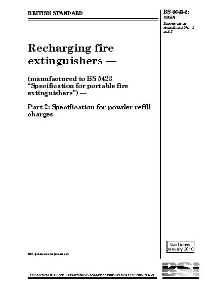 Recharging fire extinguishers (manufactured to BS 5423 'Specification for portable extinguishers') Specification powder refill charges