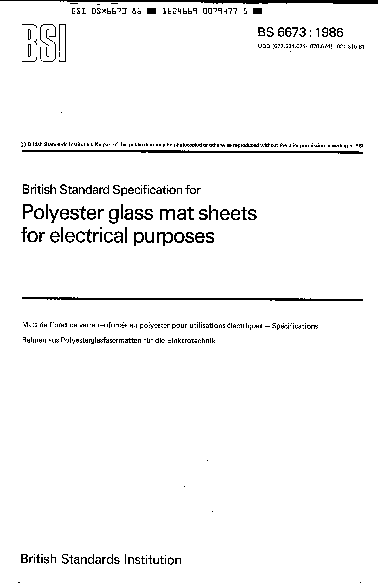 Specification for polyester glass mat sheets for electrical purposes