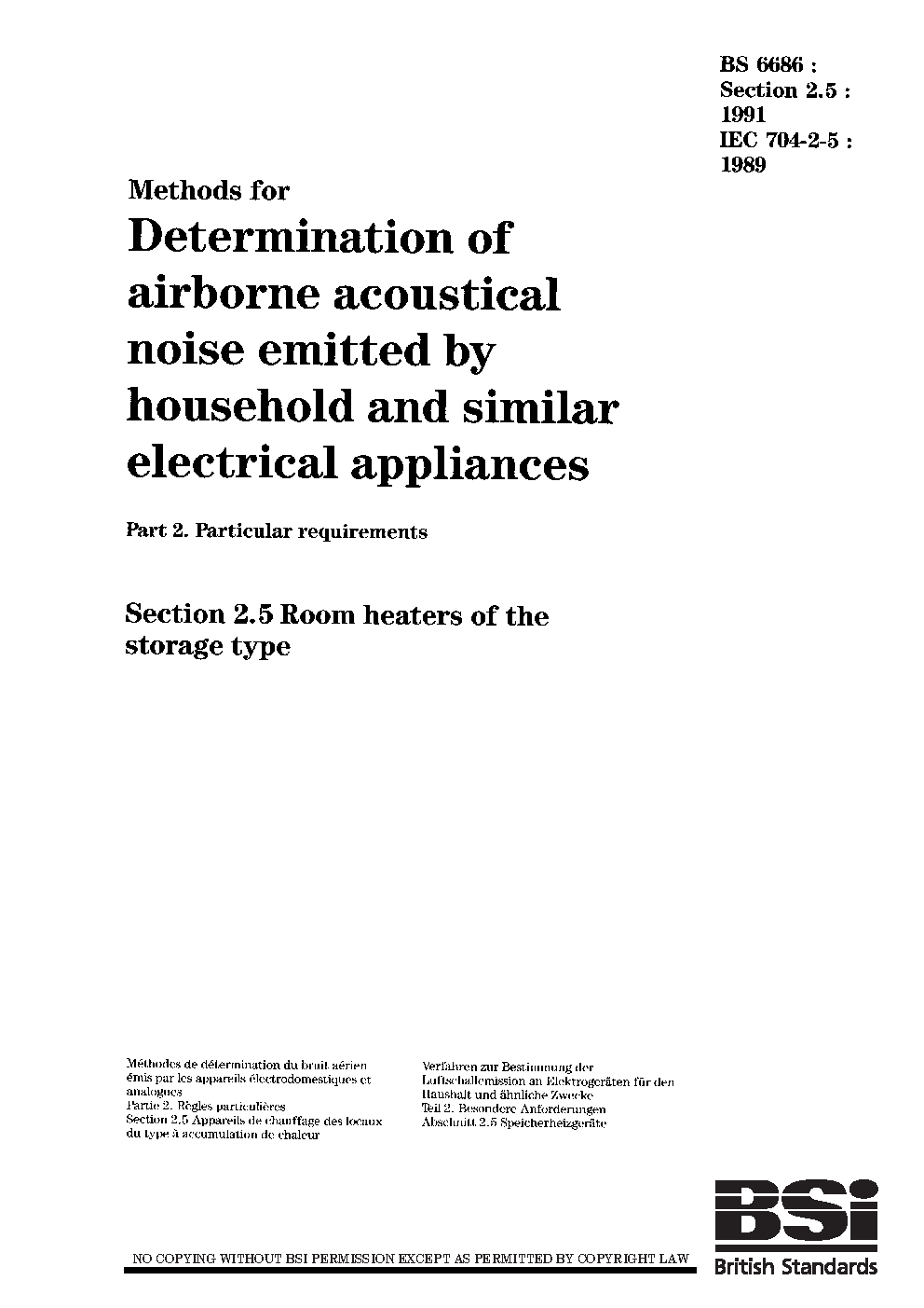 Methods for determination of airborne acoustical noise emitted by household and similar electrical appliances. Particular requirements Room heaters the storage type