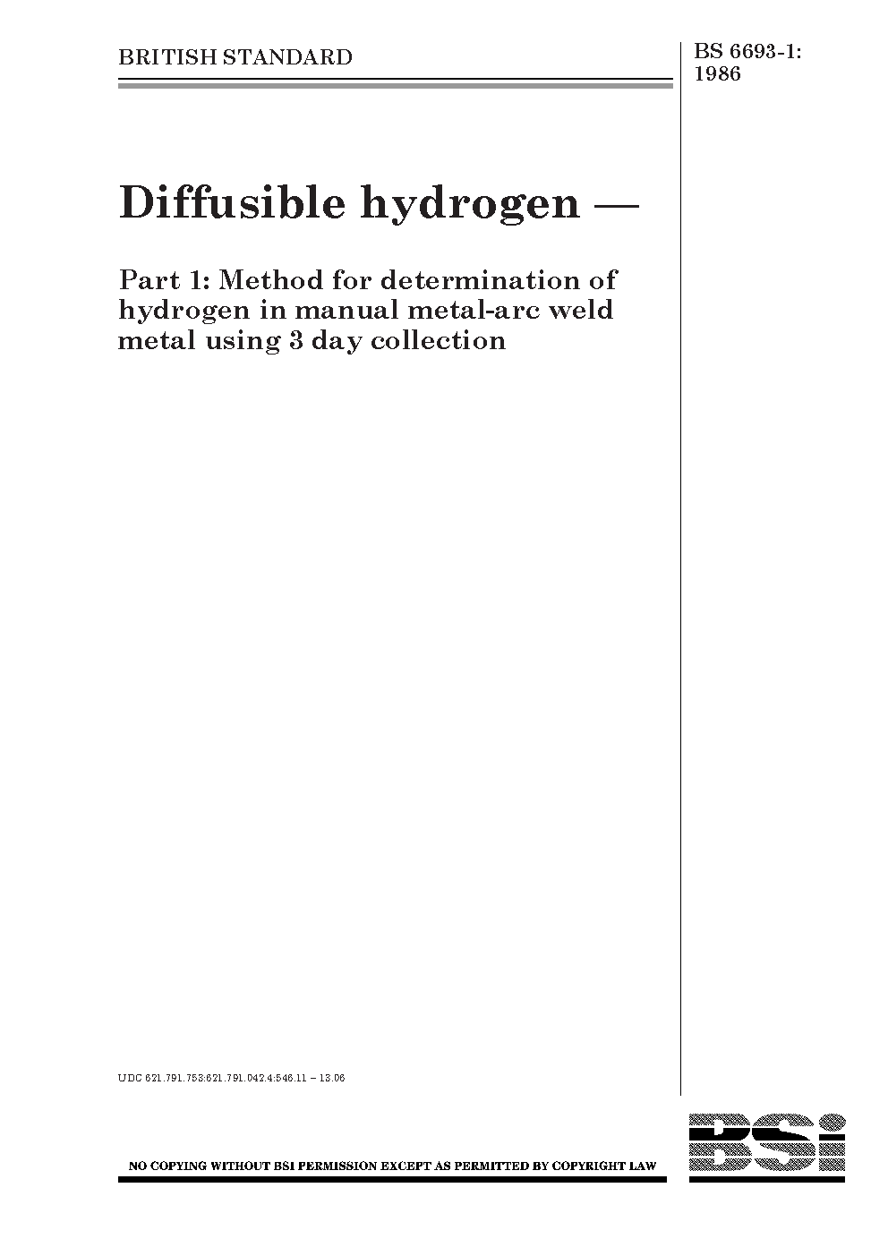 Diffusible hydrogen Method for determination of in manual metal-arc weld metal using 3 day collection