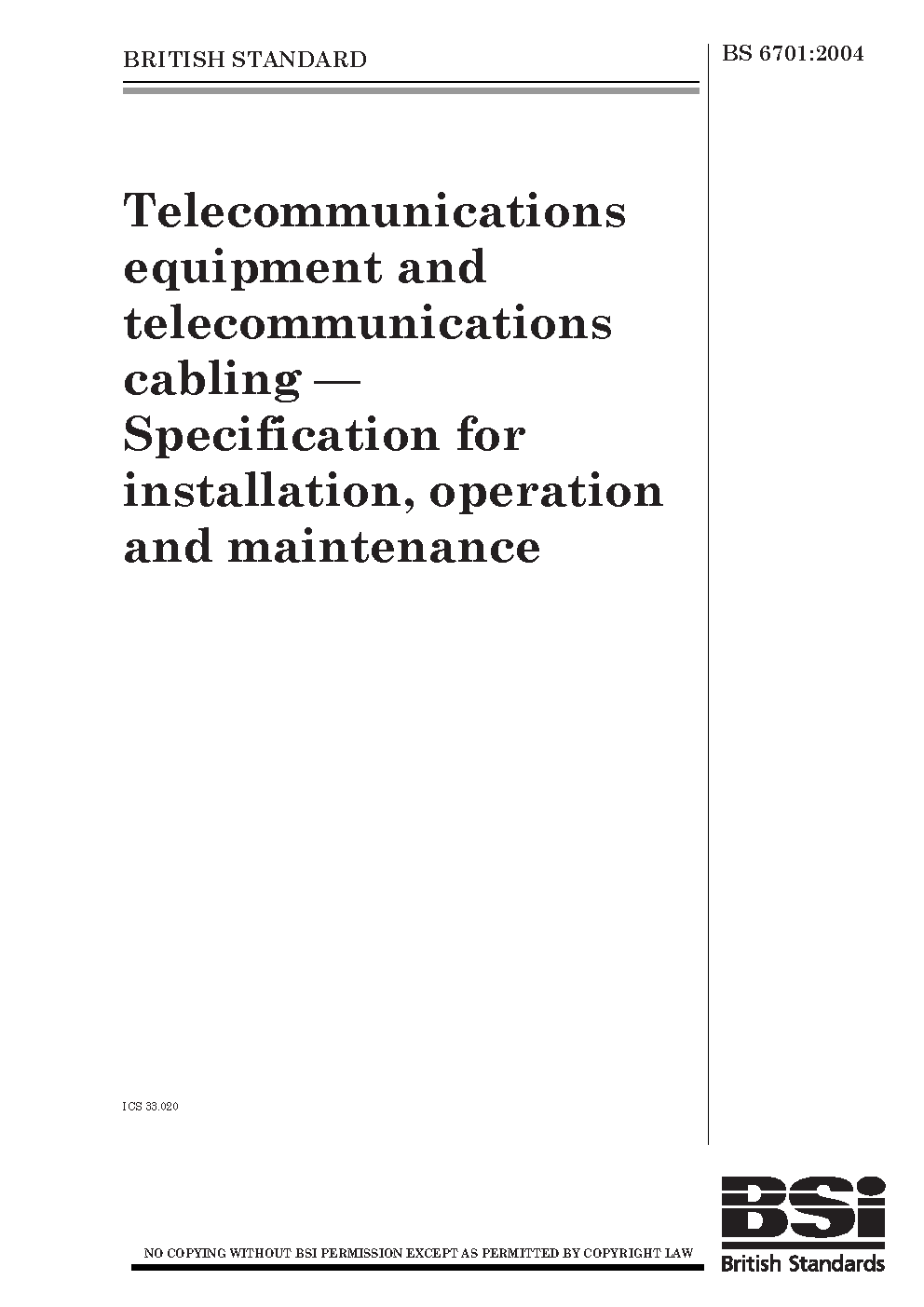 Telecommunications equipment and telecommunications cabling. Specification for installation, operation maintenance