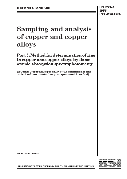 Copper;Chemical analysis and testing;Atomic absorption spectrophotometry;Zinc;Testing conditions;Absorption spectrophotometry;Flame photometry;Copper alloys;Zinc-containing alloys;Spectrochemical analysis;Calibration;Determination of content;Spectrophotometry