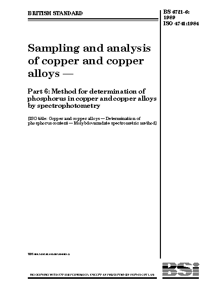 Sampling and analysis of copper alloys Method for determination phosphorus in by spectrophotometry