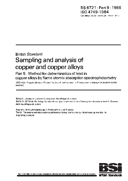 Sampling and analysis of copper alloys Method for determination lead in by flame atomic absorption spectrophotometry