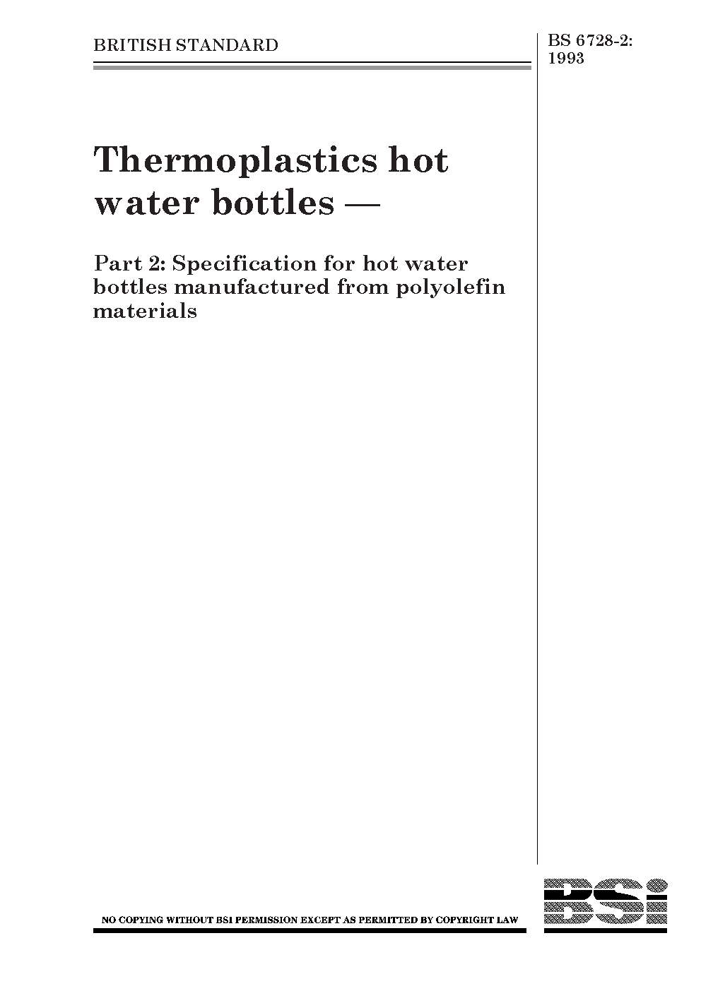Thermoplastics hot water bottles Specification for manufactured from polyolefin materials