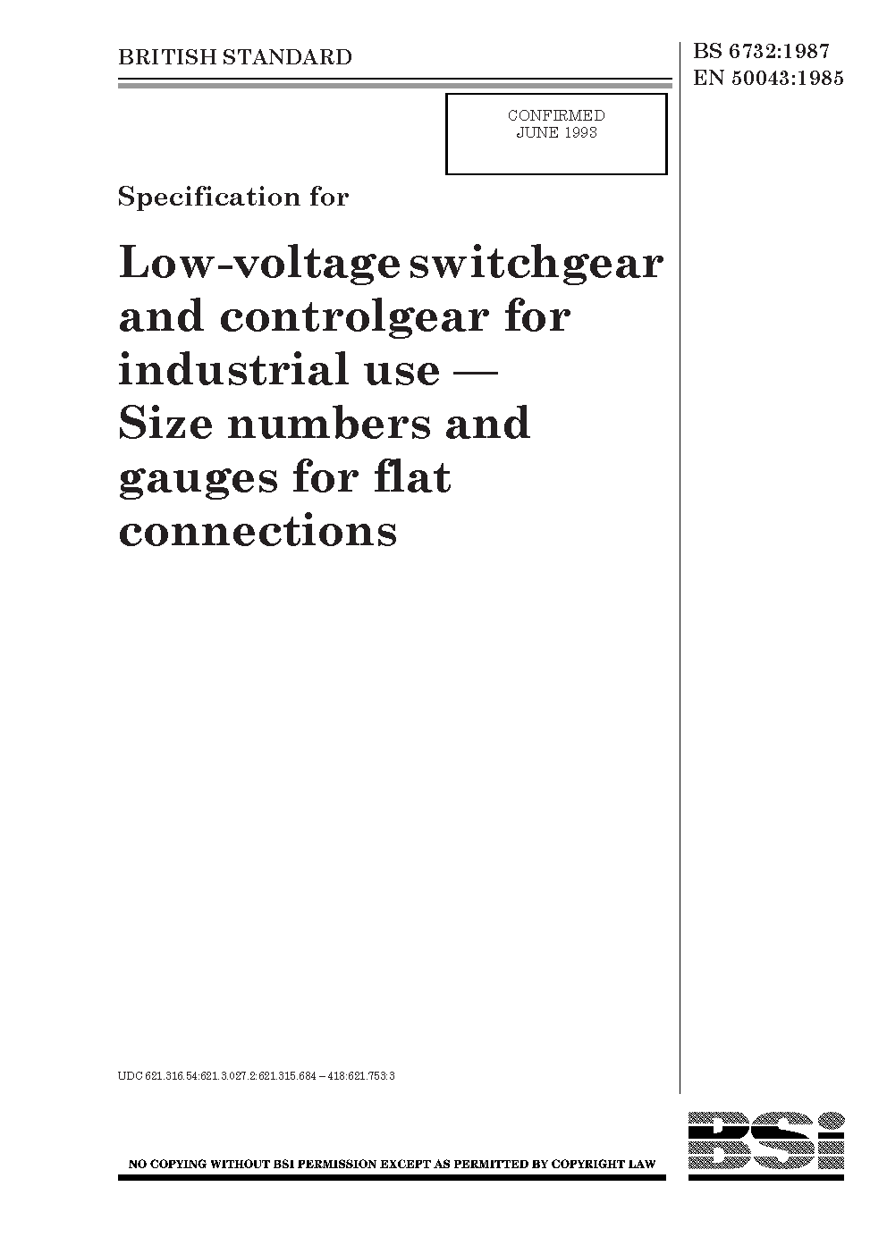 Specification for low-voltage switchgear and controlgear for industrial use. Size numbers and gauges for flat connections