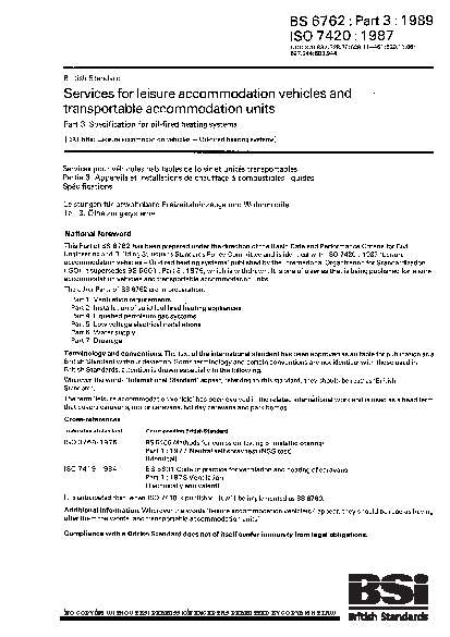 Services for leisure accommodation vehicles and transportable units Specification oil-fired heating systems