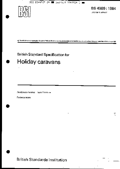 Specification for habitation and stability requirements for leisure accommodation vehicles: leisure homes