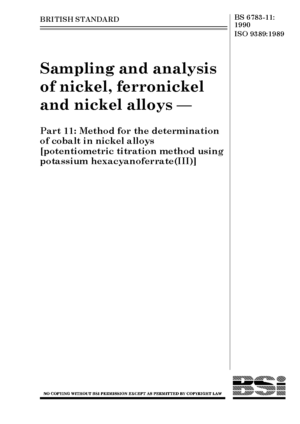 Sampling and analysis of nickel, ferronickel nickel alloys Method for the determination cobalt in (potentiometric titration method using potassium hexacyanoferrate (III))