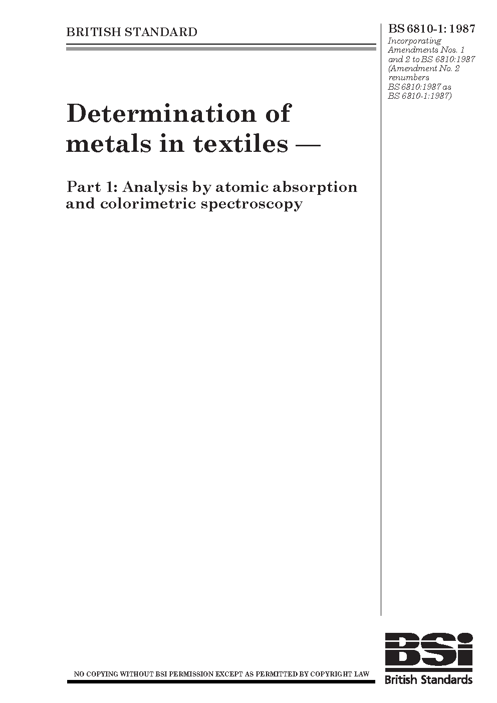 Determination of metals in textiles Analysis by atomic absorption and colorimetric spectroscopy